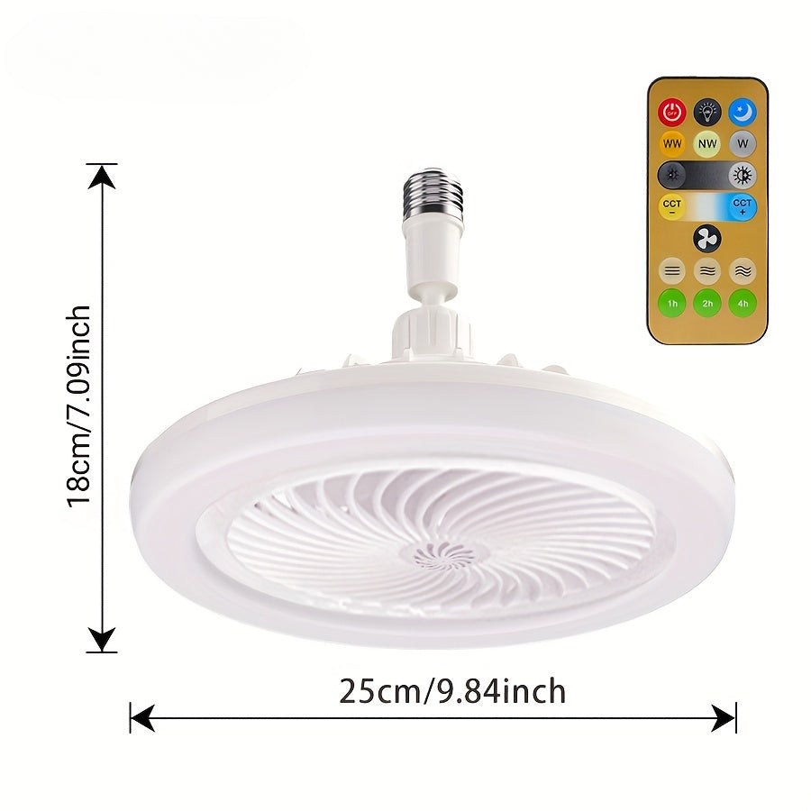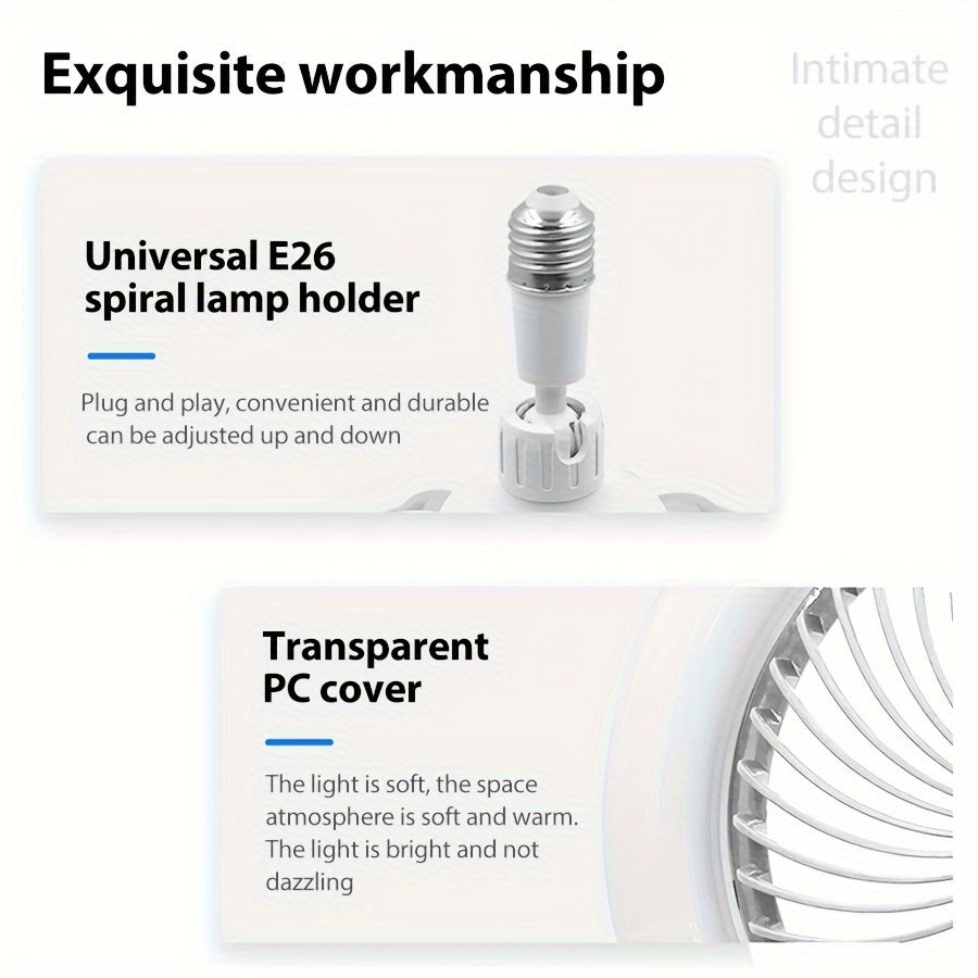 Light E26 Socket Fan: 🌀 Compatible with E26 base (Socket Base NOT Included), this fan has a wattage of 30W and operates at a voltage of AC 85-265V. Constructed from plastic, it measures D9.8 inches in diameter and H4.3 inches in height.
