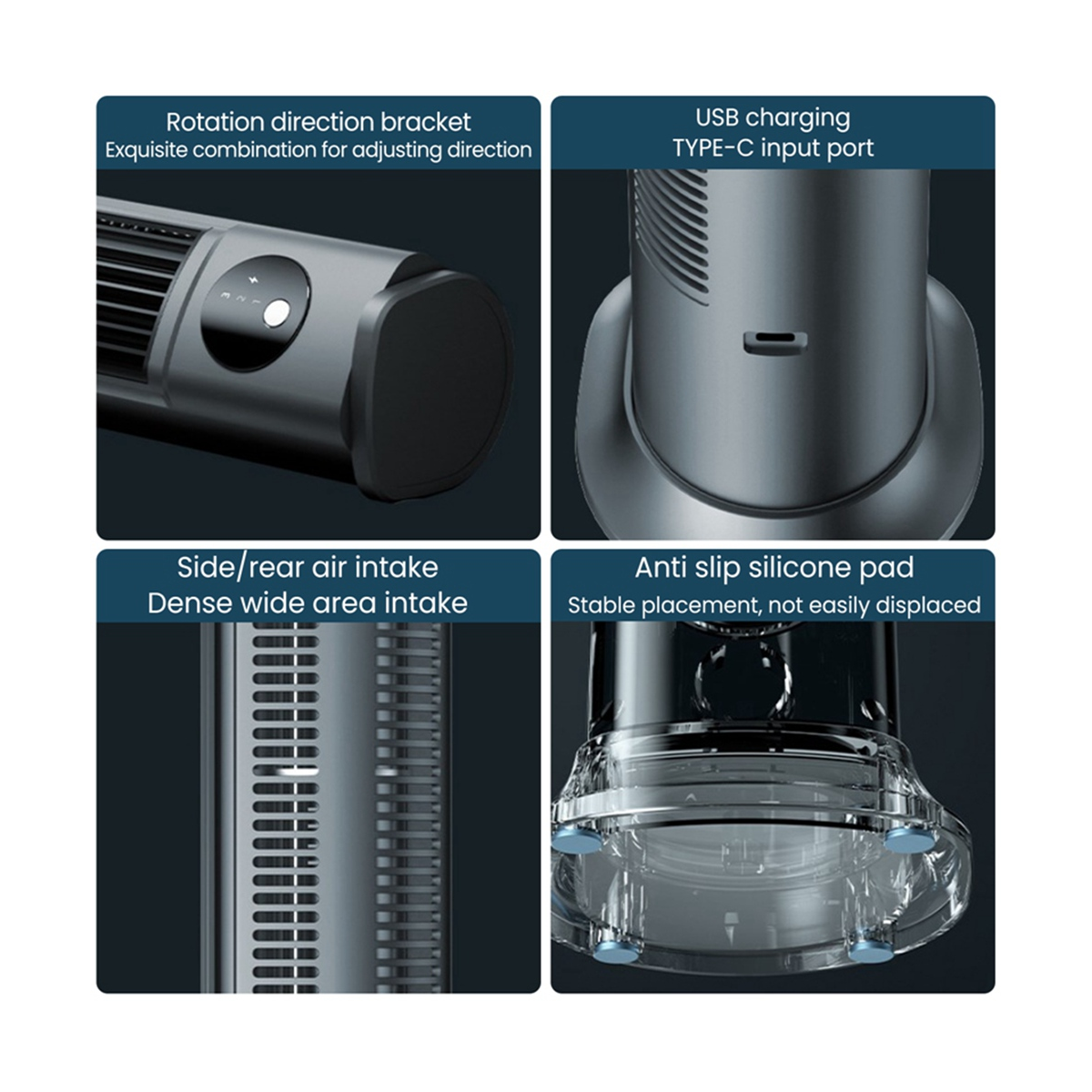 Removable base, horizontal , and faster cooling. Rotating bracket, 360 degree multi angle, pitching wind direction design, and air outlet can be adjusted at will.